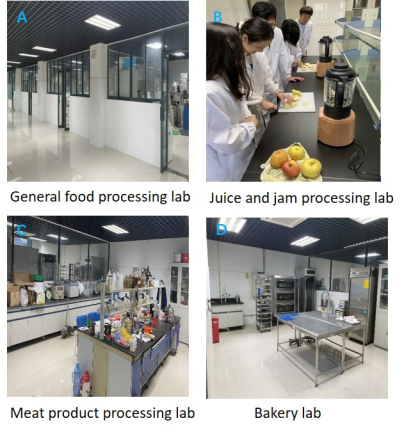 The food processing and engineering laboratory comprises a general food processing laboratory, a juice and jam processing laboratory, a meat product processing laboratory, and a baking laboratory.