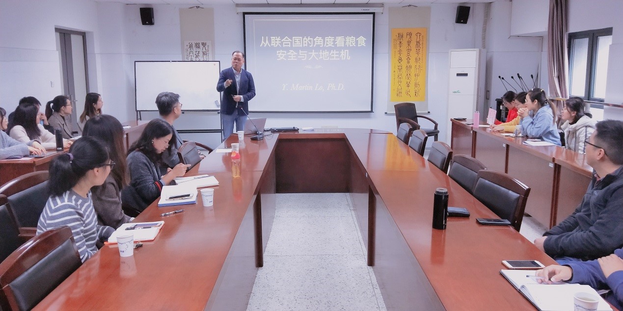 邀请,深圳大学教授、博士生导师罗扬铭教授在仙林校区工科楼211会议室做了题为“从联合国的角度看粮食安全与大地生机”的讲座。讲座由快直播陆颖健教授主持,学院教师、研究生聆听了此次讲座。