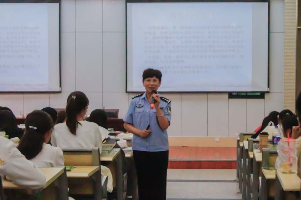联合邀请了南京市公安局刑事侦查局陈红燕警官开展了《给脑海里装一把防电信诈骗的心锁》专题讲座,学院全体新生参加了讲座。讲座由保卫处副处长张士青主持。