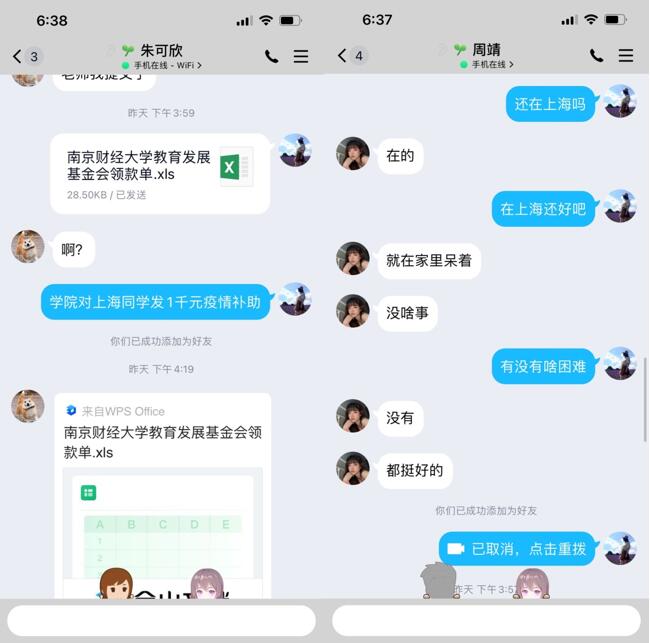 学院还为在沪的同学发放了生活补贴每人1000元,同学们对学院贴心的关怀备受感动,感激之情溢于言表。大家纷纷表示,越是困难越要迎难而上,一定会牢记学校的嘱托,遵守好属地疫情防控的要求,共克时艰,静候花开,共同迎接疫情防控战的胜利!