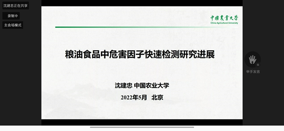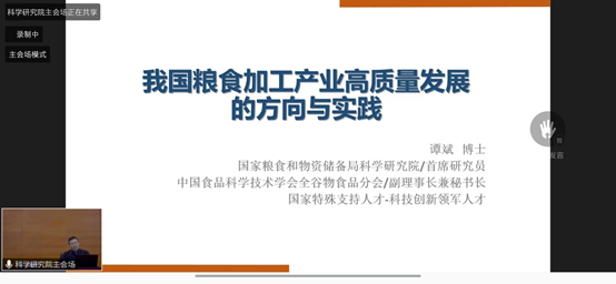 部分老师及研究生参加了2022年全国粮食和物资储备科技活动周的“粮科大讲堂”,中国工程院院士沈建忠教授、中国食品科学技术学会常务理事谭斌研究院分别对“粮油中危害因子快速检测研究进展”、“我国粮食加工产业高质量发展的方向与实践”进行了分享汇报,国家粮食和物资储备局督查专员李成毅主持本次会议。