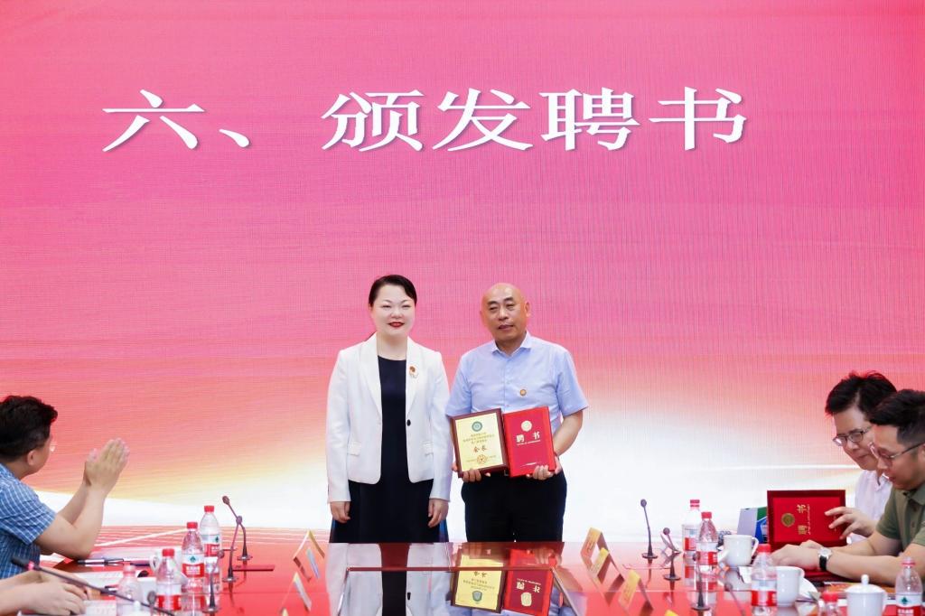 领导为当选第二届理事会成员颁发聘书,并由第一届校友会副会长张碧向新任王国年会长交接了校友会会旗。