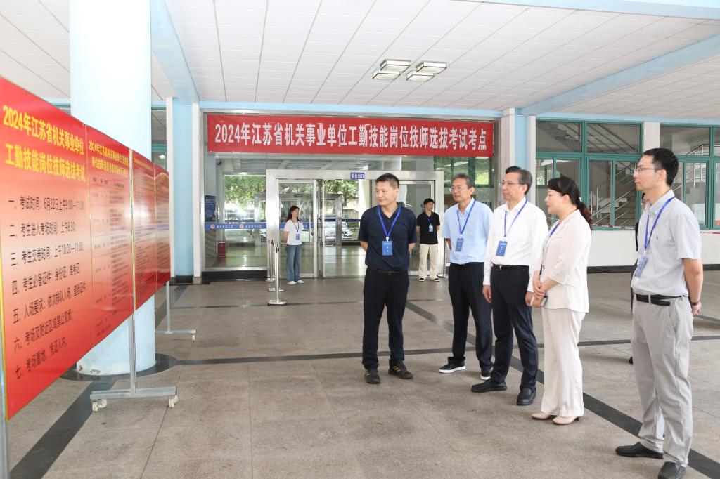 6月22日上午,由江苏省机关事业单位工人技术等级岗位考核办公室主办、我校承办的2024年省直机关事业单位工勤技能岗位技师选拔考试在学校福建路校区举行。省人力资源和社会保障厅副厅长封春晴在党委常委、副校长李煜的陪同下现场巡考,省工考办主任刘玮、学院党委书记许文彪等参加巡考。