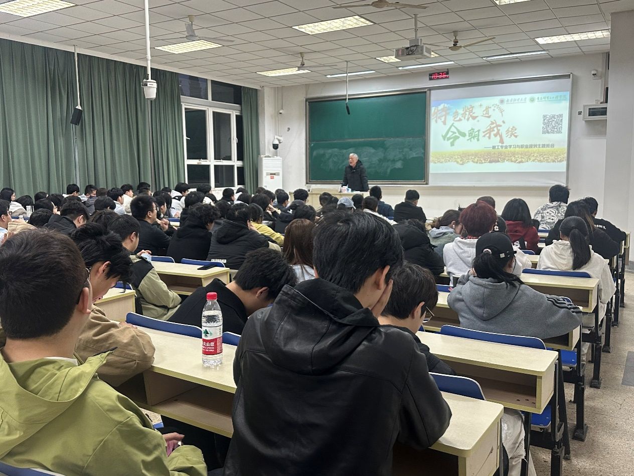 作为“老干部、老战士、老专家、老教师、老模范”进校园的实践载体,此次活动通过影像回顾、互动问答等形式,立体呈现粮食工程专业发展史。杨国峰教授从20世纪70年代的粮仓革新讲起,以“一粒稻谷的智能化旅程”串联起粮食储藏、深加工到营养升级的技术跃迁,强调“粮工科技既要攀登智能‘无人区’,更要守住‘粮安天下’的初心”。“青年要成为‘藏粮于技’的破壁者!”杨国峰教授结合参与制定国家粮储标准的经历,鼓励学生在功能主食开发、减损保鲜等领域突破创新。
