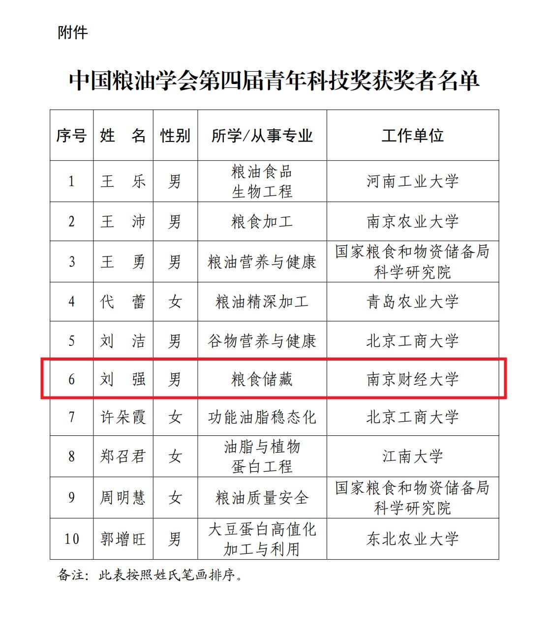 5月26日,中国粮油学会第四届青年科技奖获奖者名单公布。经单位推荐、形式审查、专家初评、综合评审、评审结果公示、奖励委员会审定等程序,快直播体育 刘强副教授成功入选。