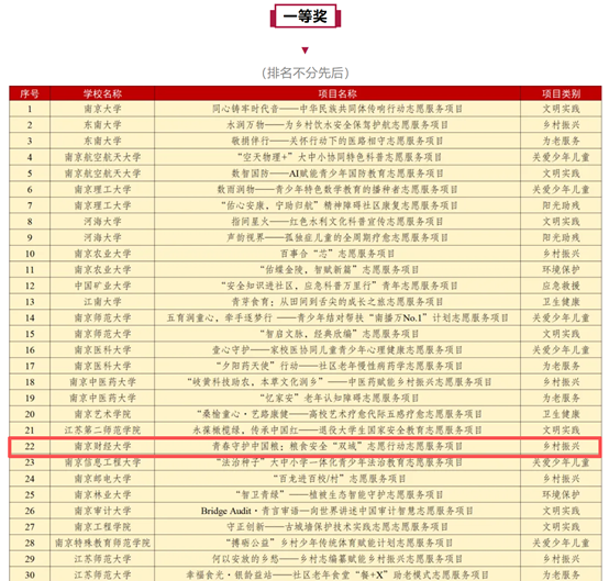 据悉,全省共有115所高校384个项目参加此次大赛,此次荣获一等奖,既是对“粮安薪火”团队过往实践的肯定,更是对学院持续推进“专业赋能志愿服务、实践培育时代新人”的有力见证。未来,学院将以此次获奖为新起点,进一步发挥学院学科优势,持续拓展 “青春守护中国粮” 项目的服务边界、挖掘实践深度。引导广大专业学子在志愿服务的广阔舞台上践行 “强农兴粮” 使命,为夯实国家粮食安全根基、赋能乡村全面振兴注入源源不断的青春力量与智慧动能。