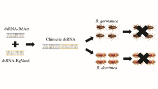 RNA干扰(RNAi)技术利用双链RNA(dsRNA)为激发物,能够通过生物体内的基因沉默通路实现靶标基因的特异性抑制,以此为基础的核酸农药具有极强的物种特异性,被誉为下一代的有害生物防控技术,相关产品已经获得了美国及加拿大等多国监管部门的上市许可,而我国业已批准了使用该技术的大豆及其制品进口。值得关注的是,有害生物产前和产后发生规律具有显著差异,产后有害生物具有多物种同时爆发的特性,因此,如何在保持靶标特异性的同时扩大防治谱是实现核酸农药应用的关键问题之一。本文利用嵌合体策略对dsRNA分子进行改造,通过串联靶向不同害虫致死基因的非保守区段设计并合成了一个新的嵌合体dsRNA分子,通过显微注射和连续性喂食实验证实该分子能够显著抑制多种害虫体内靶标mRNA的表达,并且产生了明显的防治效果。同时,脱靶验证实验还证实嵌合体dsRNA不会对非靶标生物造成影响。本研究一方面能够促进核酸农药的应用推广,另一方面有利于实现食品有害生物绿色防控。