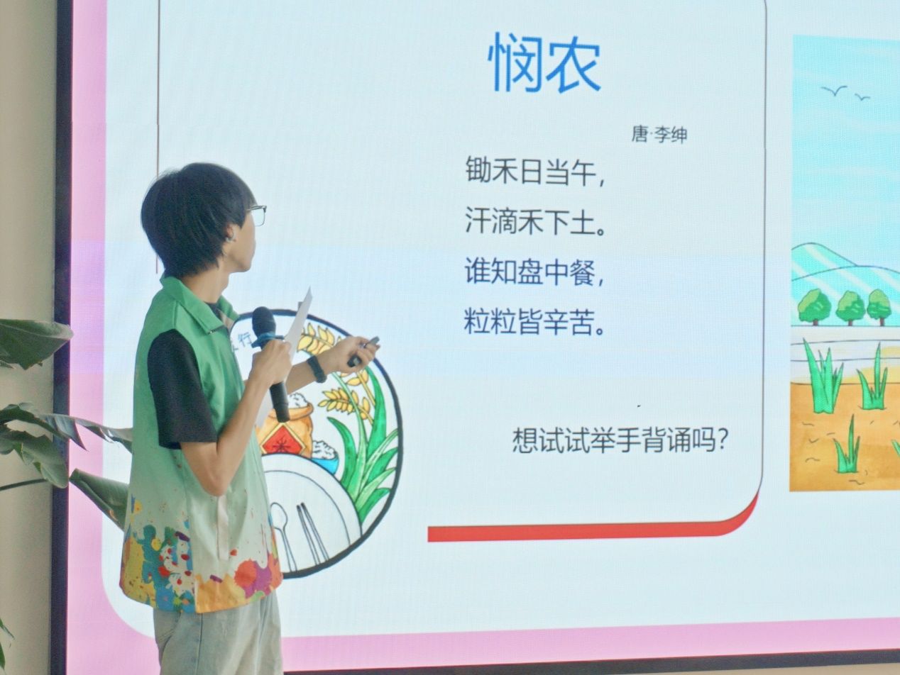 活动尾声,师生共同喊出“珍惜粮食,做节约小卫士”口号。此次校园联动不仅是一堂生动的粮食安全启蒙课,更展现了高校服务社会的责任担当。未来双方将继续深化合作,开发种植体验、粮食画展览等系列延伸活动,让爱粮节粮成为伴随孩子们成长的生活习惯,为筑牢国家粮食安全防线注入源源不断的生机与活力,以实际行动书写粮食安全教育的生动篇章。