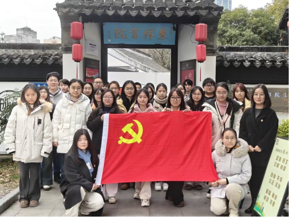 当天上午,支部党员走进东林书院,在古朴典雅的文化场景中接受廉洁学风熏陶。党员们认真聆听讲解,重温东林先贤“风声雨声读书声,声声入耳;家事国事天下事,事事关心”的治学箴言,深入了解先贤廉洁修身、心系家国的精神传承。大家深刻认识到,“廉洁学风”既是学术研究的立身之本,更是未来职业道路的从业之基,纷纷表示将把东林精神中的责任担当与廉洁自律融入求职择业全过程,树立正确就业观、价值观,以过硬品德与扎实本领立足食品行业。