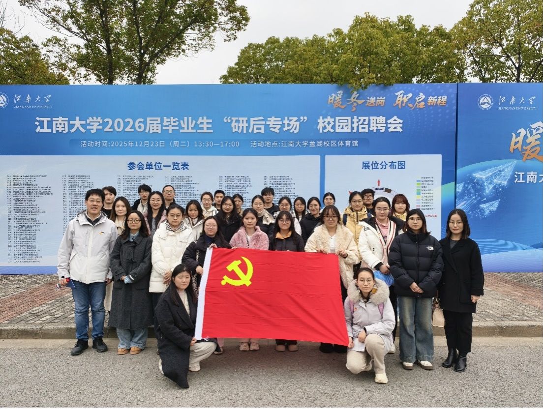 交流活动结束后,党支部党员随即参与江南大学2026届“研后专场”校园招聘会。同学们围绕岗位要求、职业发展路径、薪酬福利体系等核心问题与企业HR深入沟通,积极展示在校期间学业成果、科研经历与实践能力,多精准投递简历,多名党员与企业达成初步合作意向。