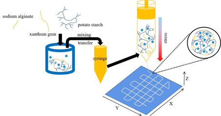 淀粉复合凝胶3D打印过程的示意图