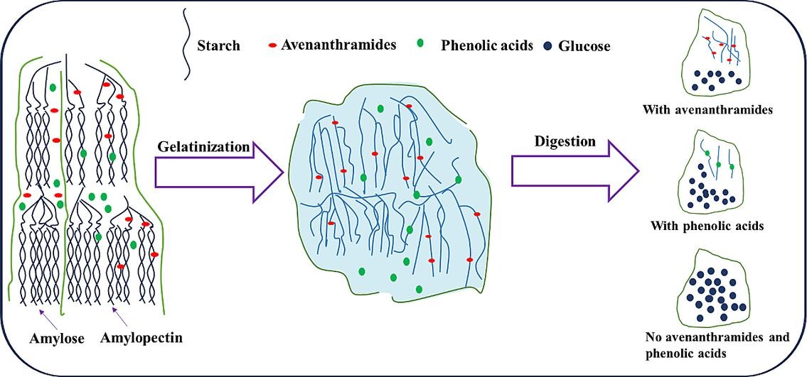 燕麦蒽酰胺与淀粉之间的相互作用机制示意图